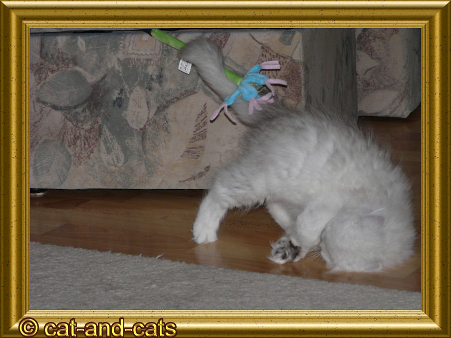 Hier spielt Balu auch mit seiner Mama. Sie hat immer ein Auge auf die Kitten.