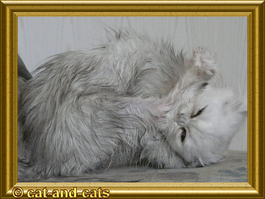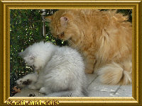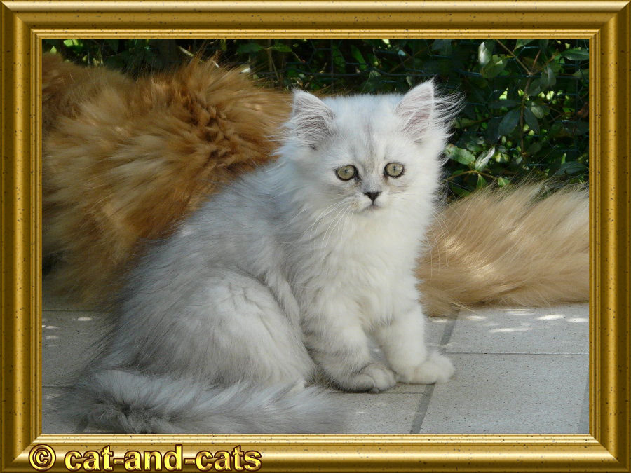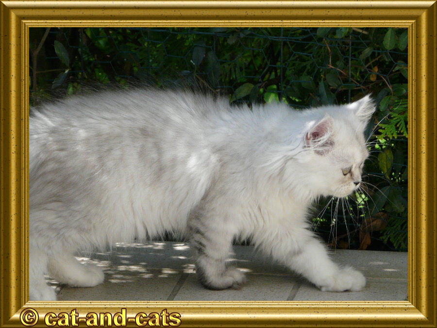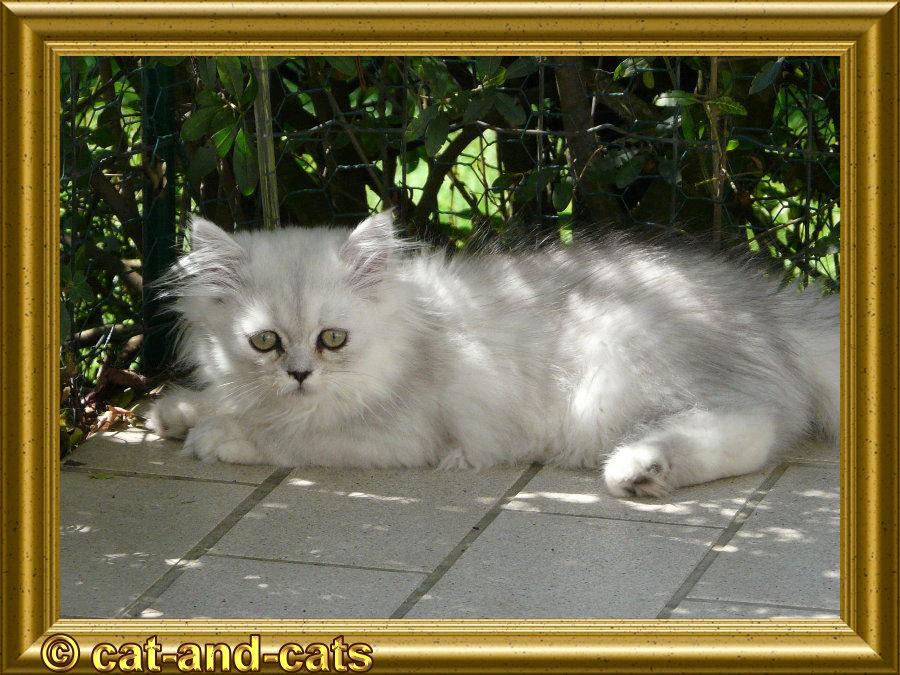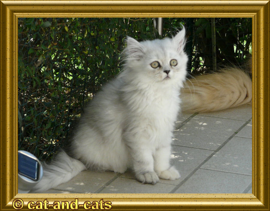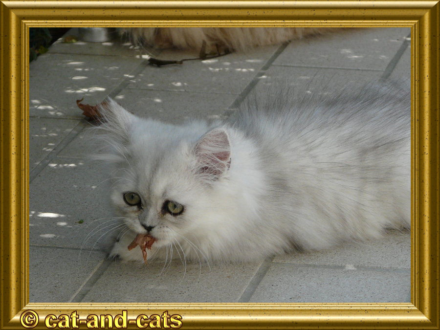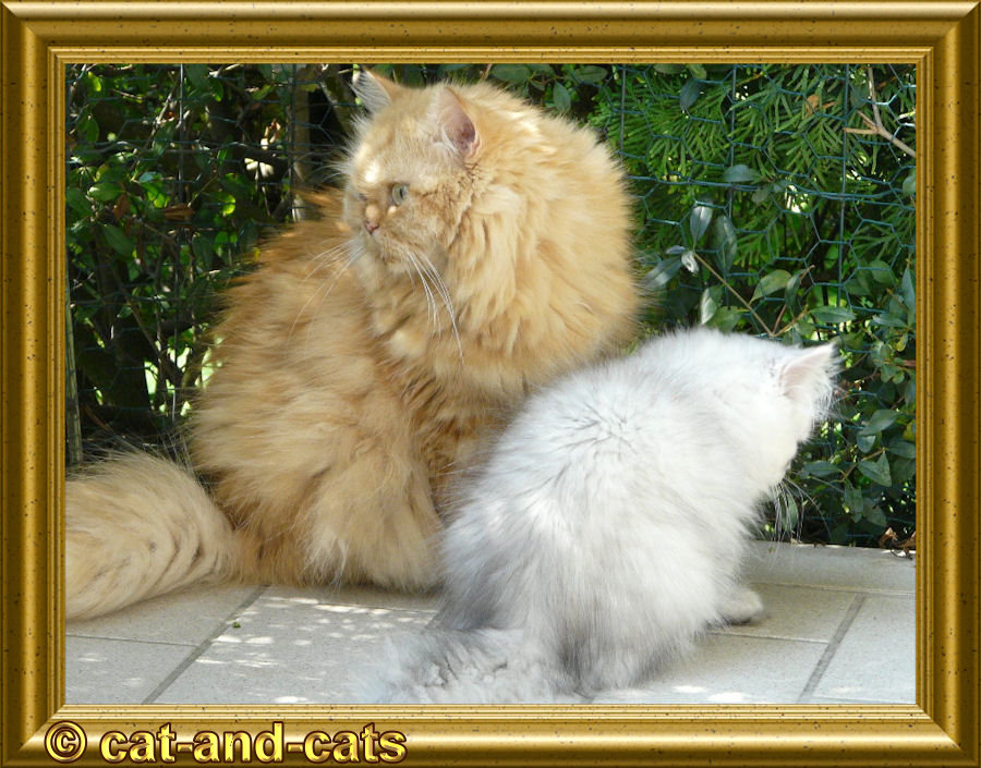 Jetzt darf er aber mit den großen Perserkatzen auf die Terrasse.
